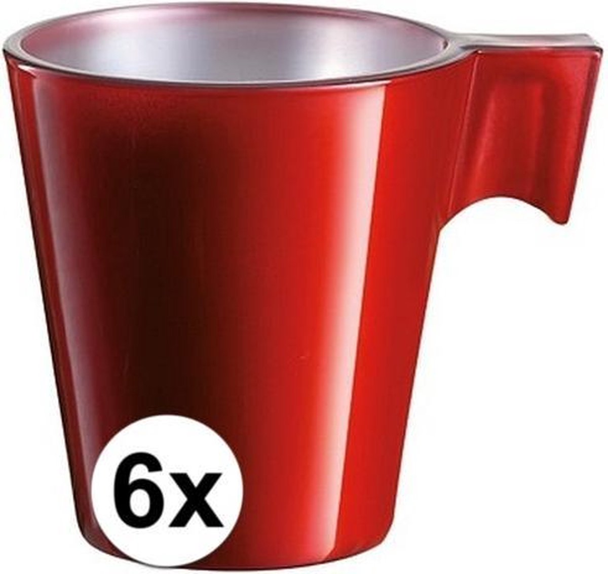 Espresso/koffie kopje rood. Materiaal: keramiek. Inhoud: ongeveer 80 ml. Afmeting: 6 x 5,5 cm. Dit koffiekopje is niet geschikt voor in de vaatwasser. U ontvangt 6 stuks.