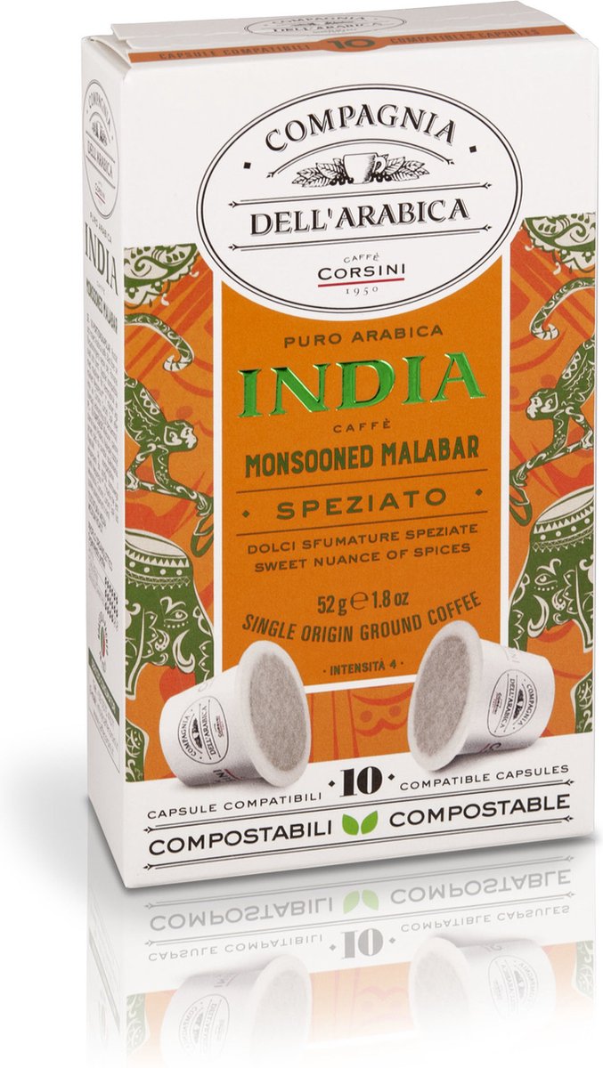 Compagnia dell’Arabica – Italiaanse koffie-10 composteerbare cups India ‘Monsooned Malabar’ ‘Single Origin’ Nespresso® machines