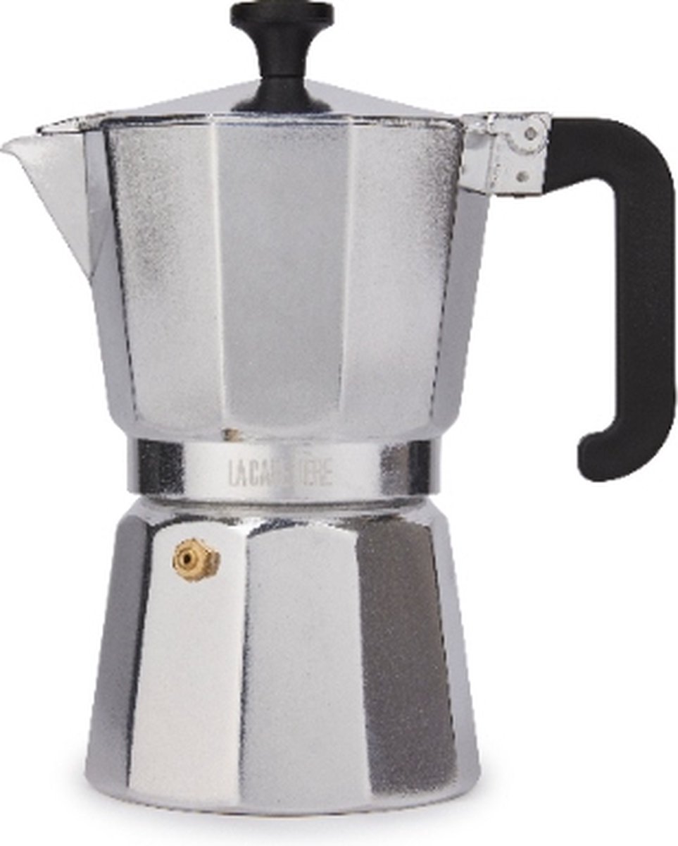 De beste espresso maak je natuurlijk op de echte Italiaanse manier met deze Venice espresso maker van La Cafetière. Dankzij de traditioneel gevormde percolator waan je je iedere dag heel even in Italië. Kun je niet wachten op een vers kopje espresso iedere ochtend? Dat komt goed uit! Het aluminium neemt namelijk zeer snel zijn hitte op waardoor de koffie binnen no-time klaar is. Het kunststof handvat en knopje blijven daarnaast koel tijdens het gebruik waardoor het inschenken zonder handschoenen geen probleem is. De espresso maker is geschikt voor alle kookplaten (behalve inductie) en heeft een inhoud van 0.29 Liter wat gelijk staat aan 6 kopjes van 50 ml. Na gebruik kunnen alle onderdelen met de hand worden schoongemaakt.