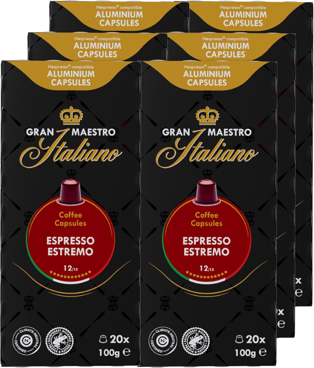 Gran Maestro Italiano – Espresso Estremo – Koffiecups – Nespresso Compatibel Capsules – Krachtige Smaak – 6 x 20 cups